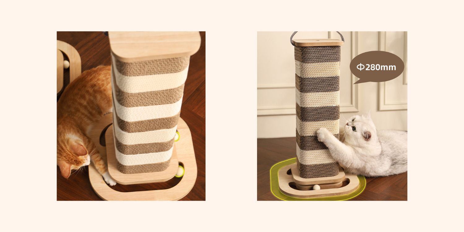 Im Vergleich zur klassischen Kratzsäule bietet die Kratzrolle viele neue Möglichkeiten: Sie ist niedriger und besser zugänglich, besonders für ältere oder bewegungseingeschränkte Katzen. Die horizontale Anordnung kommt dem natürlichen Kratzverhalten vieler Stubentiger entgegen, die gerne am Boden oder an niedrigen Flächen kratzen. Gleichzeitig bietet die runde Form einen angenehmen Widerstand, sodass das Kratzen richtig Spaß macht und effektiv ist.