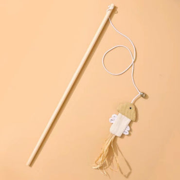 Katzenangel Katzenspielzeug Naturholzstab Mit Elastischer Kordel und Glöckchen Mit Sisalanhänger, hochgradig interaktiv (1 Stück)