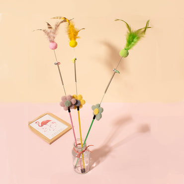 Faszinierendes Design – Der Katzenspielzeugstock ist mit bunten Plüschbällen, Federn und wunderschönen Blumenverzierungen ausgestattet, die das natürliche Jagdverhalten Ihrer Katze ansprechen....