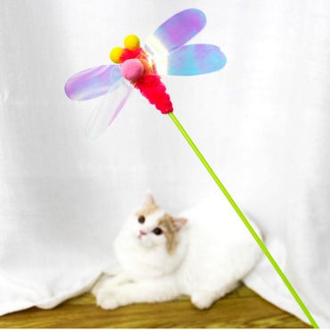Katze Spielzeug, Katzenangel, Bunte fliegende Insektenform mit Glöckchen, Beißen, Handheld, 49 cm, Drei Farboptionen