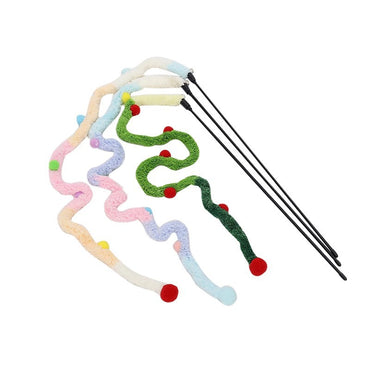 Katze Spielzeug, Raupen-Katzenangel mit Kleine Glocke, Langer Plüsch in Blau, Pink & Grün, 48 cm Holzgriff, Interaktives