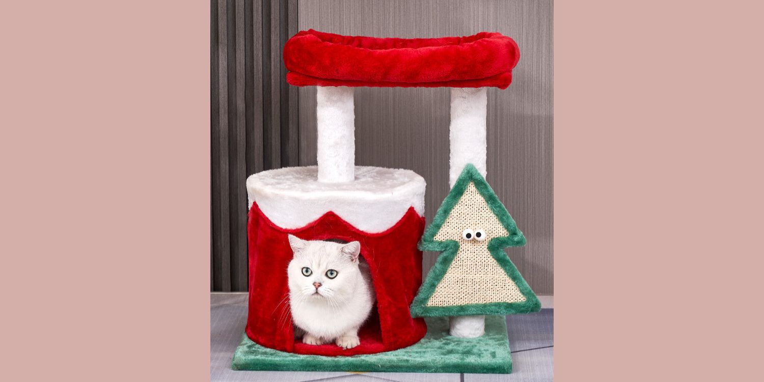 Pawsometime Weihnachtsbaum für Katzen, Süßes Design Kratzbaum im Weihnachtsstil, Wärmend mit Plüschmaterial