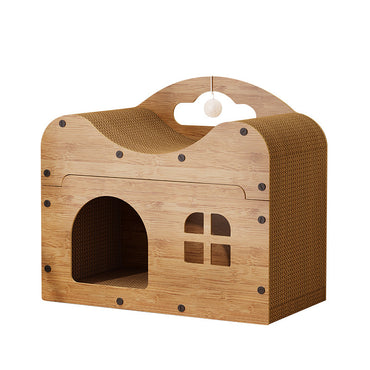 Katzen Kratzbrett, Multi-Funktionales Katzenmöbel Holz, Bärenförmigem Eingang, Natürliche Holzfarbe