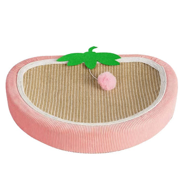 Kratzbrett Katze, Erdbeer-Sisalmatte Katzenbett mit Plüschbällen, Gebogenes Design, einen komfortablen Ort zum Kratzen & Ruhen