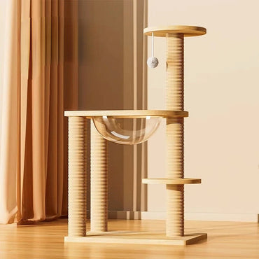 Katzenbaum Vollholz, Katzenspielzeug Baumhaus Design, Sisal Kratzbaum mit Kuschelhöhle, Kletterbaum für Kitten und Katzen