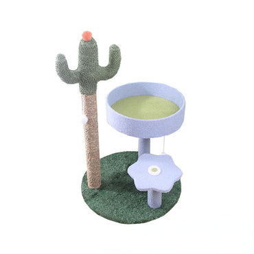 Kratzbaum Modern, Kaktusform Sisal-Kratzbaum, Stylischer Grün & Blau, Multifunktionales, Ruheplatz für Ihre Katze