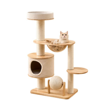 Kratzbaum groß, Geräumiger Katzenkletterbaum aus Massivholz, mit Katzenbett & Katzenkratzbrett für gesunde Krallenpflege