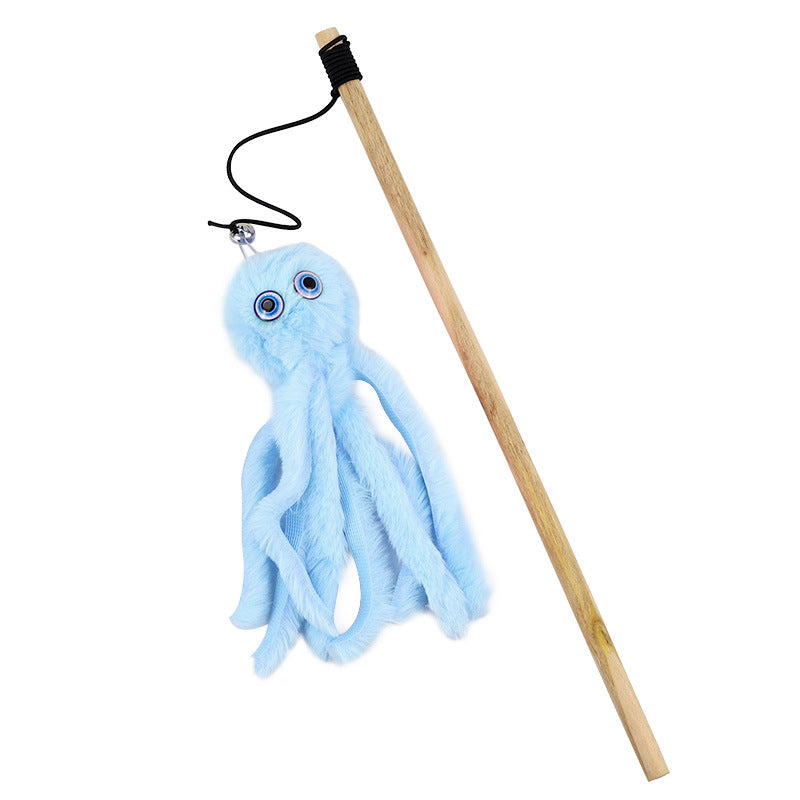Katze Spielzeug, Bunte Katzenangel Plüschkrake Mit Holzstock, Fang Den Spaß Mit Elastischem Seil Für Katzen, Ideal Für Aktive Spielstunden