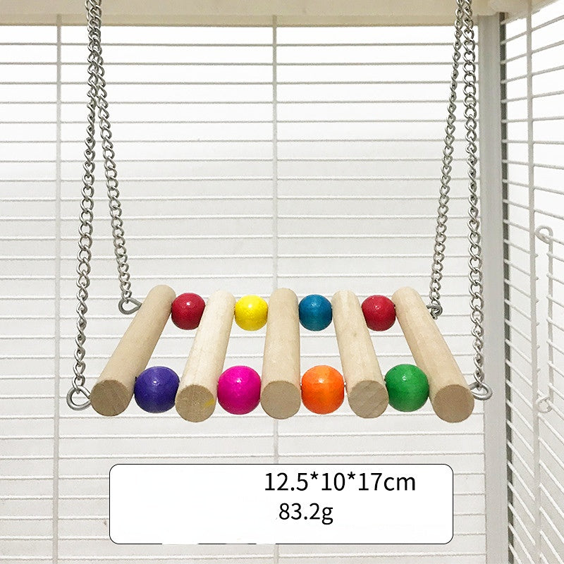 Wellensittiche Spielzeug, Bunte Holz Hängende Brücke & Hängematte, Unterhaltung und Spaß, Mehrfarbig Auswählen