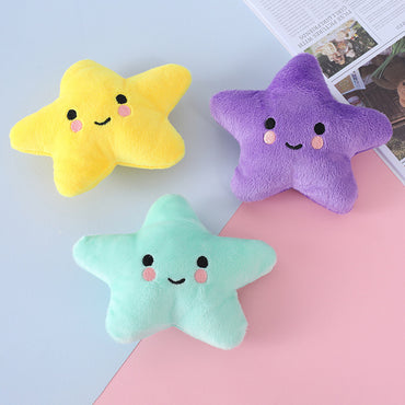 Kuscheltiere für Hunde, Fünfzack-Stern Plüschspielzeug mit Quietschfunktion, Hundefreundliches in Gelb, Grün und Lila