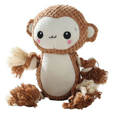 Kuscheltier für den Hund, Weiches Affe mit Bissfestes Baumwollseil, Zahnreinigung, Hundespielzeug Quietschen für Spaß, 3 Stücke
