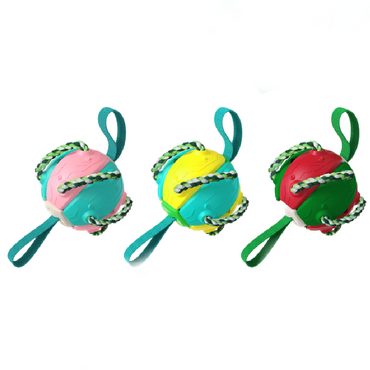 Hunde Ball Spielzeug mit Seil, Buntes und handliches Hundespielzeug für draußen zum Trainieren und Spielen (1 Stück)