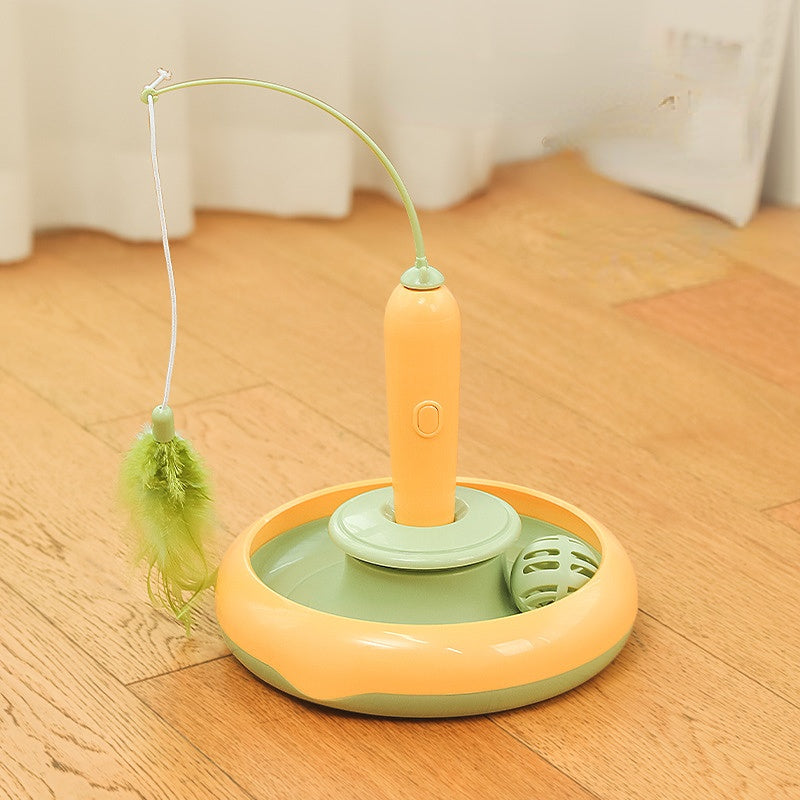 Katzen Spielzeug, Gelb Cat-Drehteller, Kippsicheres Design mit Wackel Federglocken-Katzenangel & Katzenminze-Bälle