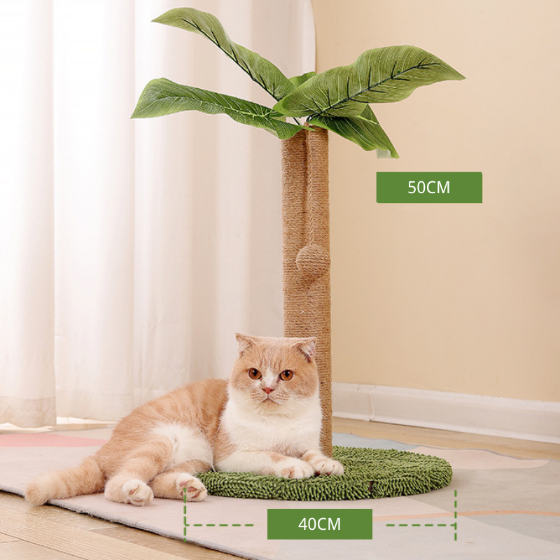 Holz Katzenkratzbaum, Stehende Katzenkratzsäule im Kokosbaum-Design, aus Sicheren Materialien, Braun und Grün