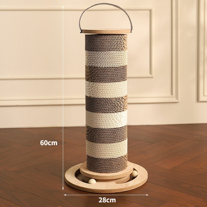 Moderner Kratzbaum, Dicker Wellpappe mit Spielball aus massivem Holz, Höhenverstellbar & Tragbar, für Katzen aller Größen