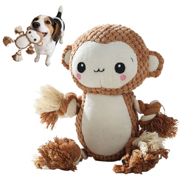 Kuscheltier für den Hund, Weicher Affe mit Quietscher für Spielspaß, mit Bissfestes Baumwollseil für Zahnreinigung, 3 Stücke