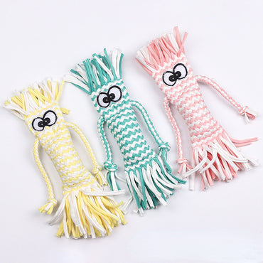 Hundespielzeug, Baumwollseil Puppe mit quietschen, Kauspielzeug für Welpen, interaktives & Zahnreinigung, drei Farben