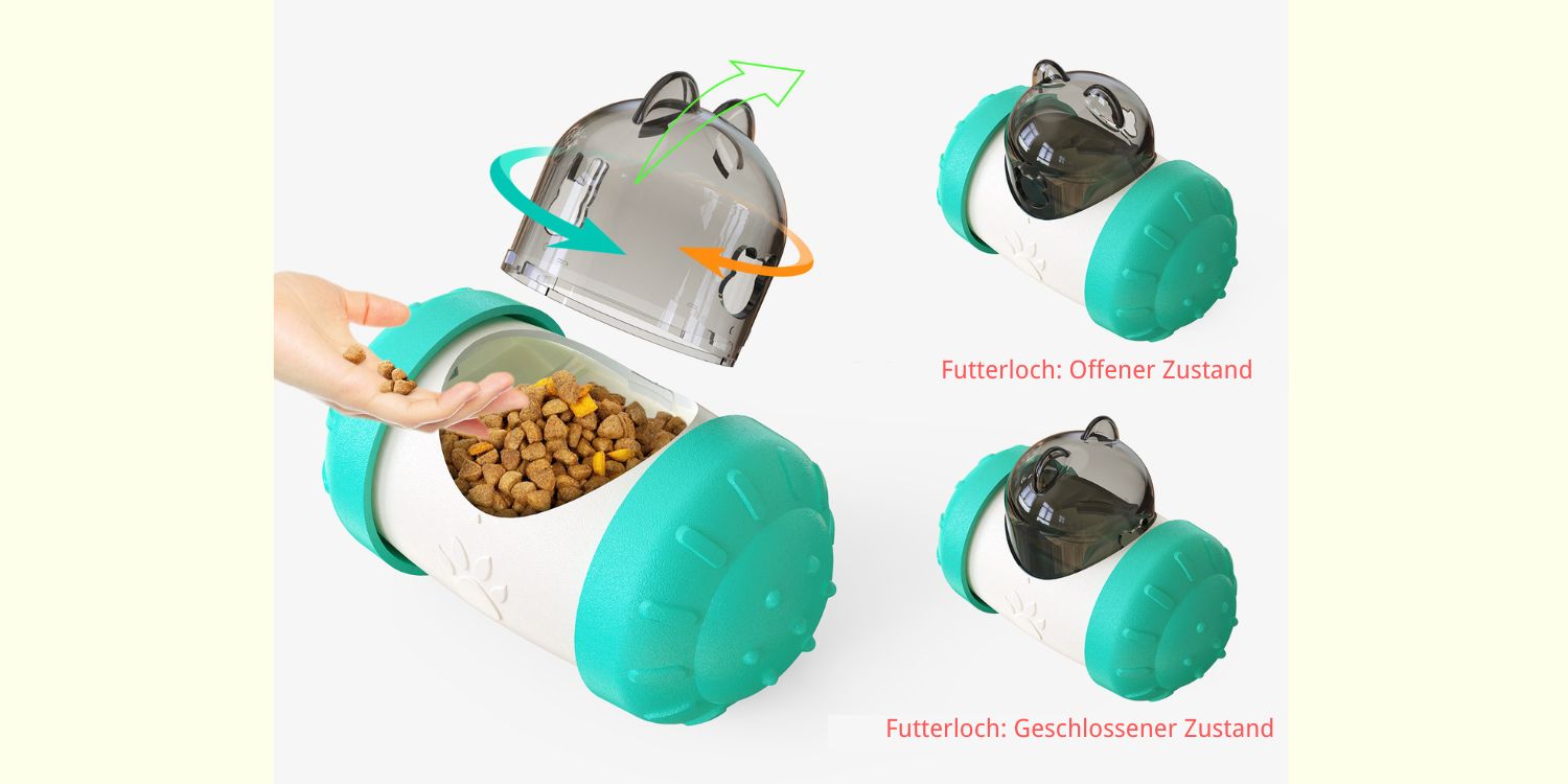 Wenn Ihre Katze oder Ihr Hund mit dem Spielzeug interagiert, wird es mit Futter gefüllt, was eine zusätzliche Motivation bietet, das Spielzeug zu erkunden und zu benutzen. Dies fördert nicht nur den Spieltrieb, sondern sorgt auch dafür, dass das Fressen zu einem aktiven Erlebnis wird.