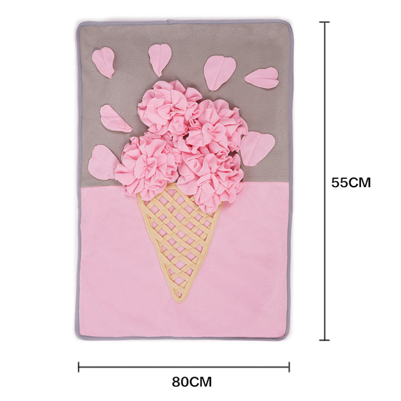 Das Design unseres Hunde Intelligenzspielzeug ist inspiriert von fröhlichen Mustern, einschließlich eines niedlichen Eistüten- und Blumenmotivs. Diese ansprechenden Farben und Formen ziehen die Aufmerksamkeit Ihrer Fellnase auf sich und laden zum Spielen ein. Hunde sind von Natur aus neugierig, und ein solches spielerisches Design stimuliert ihre Sinne, was sie dazu bringt, aktiv zu werden und zu erkunden. Die lebhaften Farben helfen, die Aufmerksamkeit Ihres Hundes länger zu halten und fördern ein fesselndes Spielerlebnis, das sowohl unterhaltsam als auch lehrreich ist.