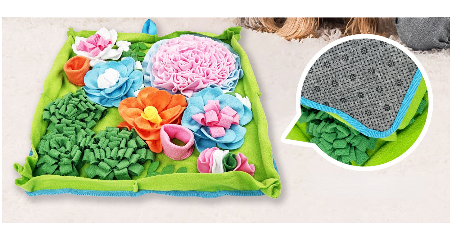 Unser hunde intelligenzspielzeug bietet eine Vielzahl an Spielmöglichkeiten, die keine Langeweile aufkommen lassen. Mit einer Größe von 50 cm x 50 cm und einem komplexen, mehrschichtigen Blumenmotiv ist dieses Spielzeug ideal für Hunde, die sich gerne mit verschiedenen Herausforderungen beschäftigen. Die unterschiedlichen Schichten und Verstecke bieten zahlreiche Möglichkeiten für kreative Spiele und fördern das strategische Denken. Ihr Hund wird es lieben, nach Leckerlis zu suchen und neue Wege zu finden, um das Spielzeug zu erkunden und zu nutzen.