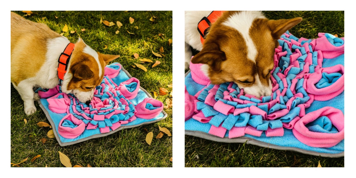Ein besonderes Merkmal unseres Spielzeugs für den Hund ist der integrierte Schnüffelteppich. Der Teppich ermöglicht es Ihrem Hund, seine natürlichen Instinkte zu nutzen, während er nach versteckten Leckerlis sucht. Sechs kleine Gruben sind strategisch platziert, um die Suchaufgabe abwechslungsreich und spannend zu gestalten. Ihr Hund wird es lieben, seine Nase zu benutzen, um die Leckereien zu erschnüffeln. Dies stimuliert nicht nur seine Sinne, sondern sorgt auch für eine gesunde mentale Herausforderung.