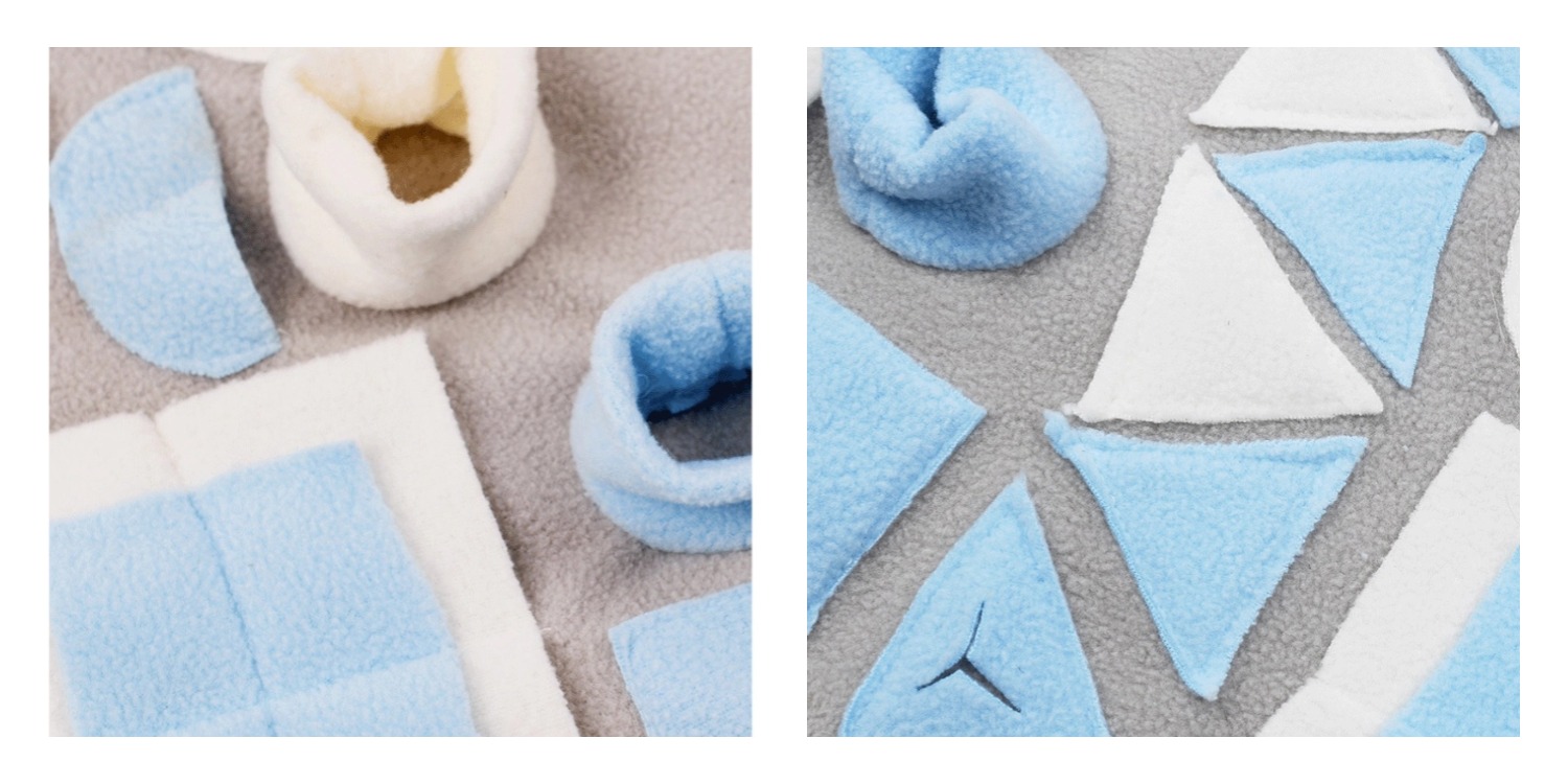 Eines der Highlights unseres Spielzeugs für den Hund ist das blaue und weiße Schnüffelpad. Es bietet eine aufregende Möglichkeit für Ihren Hund, seine Nasenfähigkeiten zu testen und gleichzeitig Freude daran zu haben. Das Schnüffeln ist für Hunde nicht nur eine natürliche Verhaltensweise, sondern auch eine hervorragende Methode, um Stress abzubauen. Das Pad gibt Ihrem Hund die Gelegenheit, seine Sinne zu schärfen und Gegenstände zu finden. Durch das gezielte Suchen nach Leckerlis auf dem Schnüffelpad wird auch die Geduld Ihres Hundes gefordert, was zur Entwicklung seiner Problemlösungsfähigkeiten beiträgt.