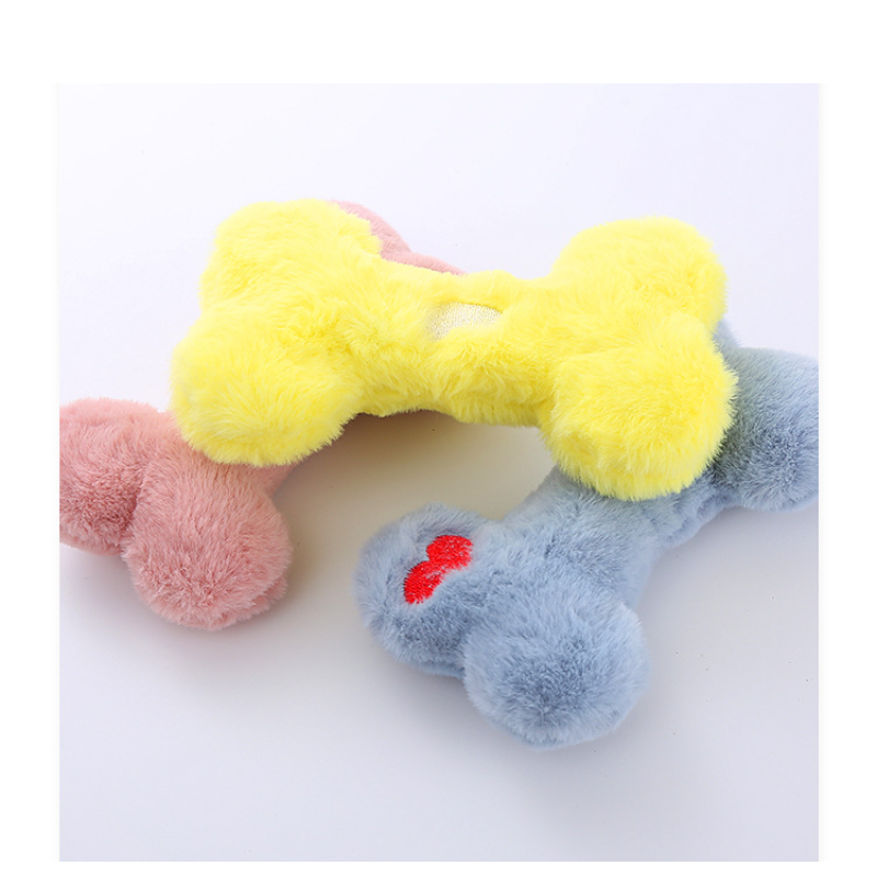 Das kuscheltier für den hund ist in drei lebhaften Farben erhältlich: Pink, Blau und Gelb. Diese kräftigen Farben sorgen nicht nur für eine hohe Sichtbarkeit, sondern machen das Spielzeug auch optisch ansprechend in jedem Haushalt. Das süße Design, das an einen Knochen erinnert, zieht die Aufmerksamkeit Ihres Hundes sofort an. Die verschiedenen Farben und das ansprechende Design fördern zudem das aktive Spielverhalten, da Hunde sich oft von bunten Spielzeugen angezogen fühlen. Somit wird Ihr pelziger Freund motiviert, mit seinem neuen Lieblingsspielzeug zu interagieren und es zu erkunden.