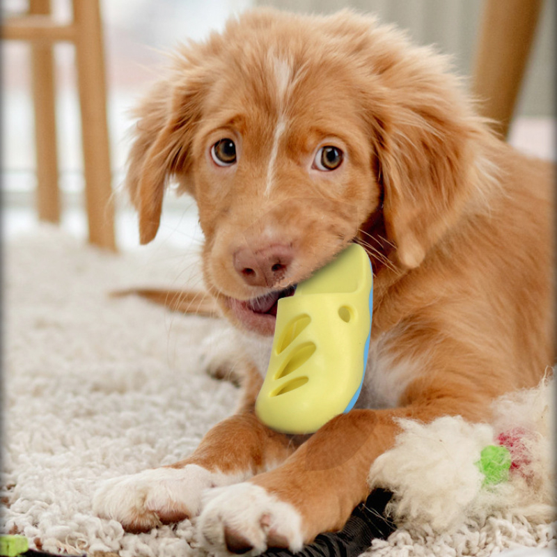 Das Hund Spielzeug im Design eines Hausschuhs sorgt für ein außergewöhnliches Spielerlebnis. Dieses niedliche Spielzeug ist in zwei lebendigen Farben, Gelb und Blau, erhältlich und wird den Spieltrieb Ihres Hundes fördern. Die ansprechende Form und die Farben stimulieren das Interesse Ihrer Haustiere und wecken ihre Neugier. Dank des griffigen Designs können Hunde leicht den vollen Spaß am Kauen und Herumtragen erleben. Durch die Einzigartigkeit des Designs wird das Spielzeug sicherlich schnell zum Lieblingsspielzeug Ihres Hundes.
