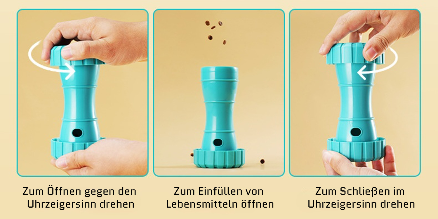 Die Anwendung des hunde intelligenzspielzeug könnte nicht einfacher sein. Um das Spielzeug zu befüllen, müssen Sie einfach den Deckel gegen den Uhrzeigersinn öffnen, die gewünschte Menge an Hundefutter einfüllen und anschließend im Uhrzeigersinn wieder zuschrauben. Diese unkomplizierte Handhabung sorgt dafür, dass Sie auch in hektischen Momenten schnell reagieren können, um Ihrem Hund eine neue Herausforderung zu bieten. Darüber hinaus ist das Material so beschaffen, dass es leicht zu reinigen ist. Nach dem Spielen können Sie das Spielzeug einfach abspülen oder in die Geschirrspülmaschine geben. So bleibt das hunde intelligenzspielzeug hygienisch und Einsätze sind jederzeit möglich.