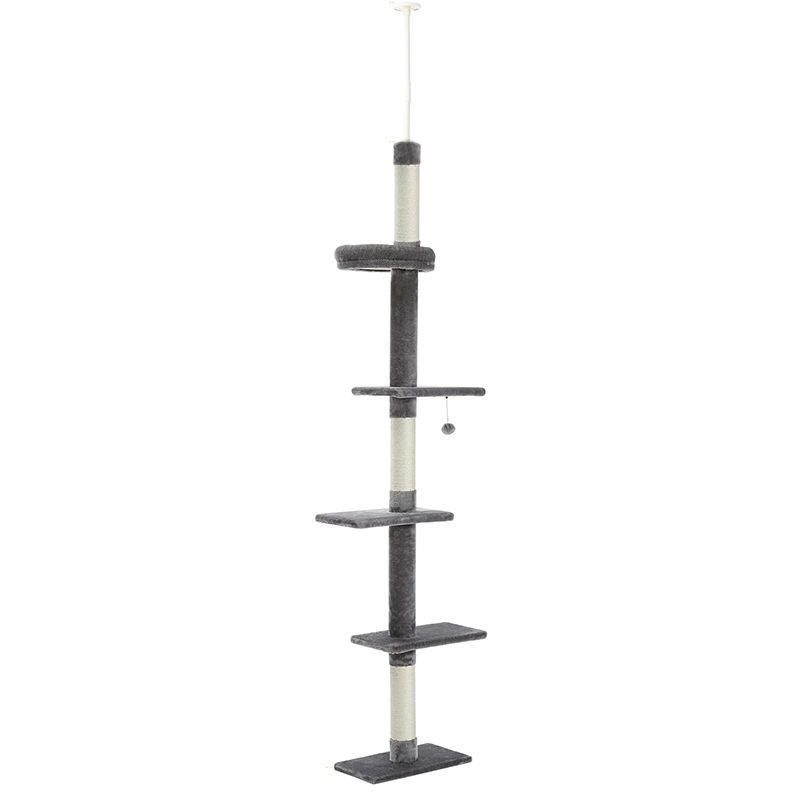 Der Katzen Baum ist stolze fünf Ebenen hoch und bietet somit unzählige Möglichkeiten für Ihre Katze, sich zu bewegen und ihre Umgebung zu erkunden. Die unterschiedlichen Höhen fördern nicht nur die natürlichen Kletterfähigkeiten Ihrer Katze, sondern lassen auch den Spielinstinkt aufblühen. Jede Ebene ist strategisch positioniert, um eine spannende Erkundungsreise zu ermöglichen. Zusätzlich sind die Plattformen mit komfortablen, weichen Oberflächen ausgestattet, auf denen sich Ihre Katze nach einem langen Tag voller Aktivität entspannen kann.