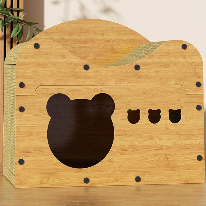 - Platzsparendes und ansprechendes Design: Mit einem vertikalen Design bietet dieses Kratzmöbel die ideale Lösung für Wohnungen mit begrenztem Platz. Es nimmt minimalen Raum ein und lässt sich leicht in jede Ecke Ihrer Wohnung integrieren. Der besondere Eingangsbereich in Form eines kleinen Bären zieht die Aufmerksamkeit Ihrer Katzen sofort auf sich und macht es zu einem attraktiven Möbelstück für Ihr Zuhause.