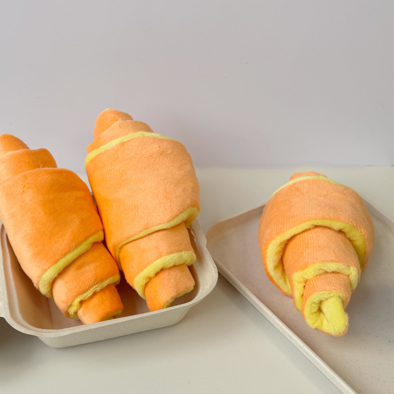 Pädagogisches Croissant-Brot-Plüschtier für Katzen, ein simuliertes Backspaßspielzeug, das Futter verstecken und Geräusche machen kann