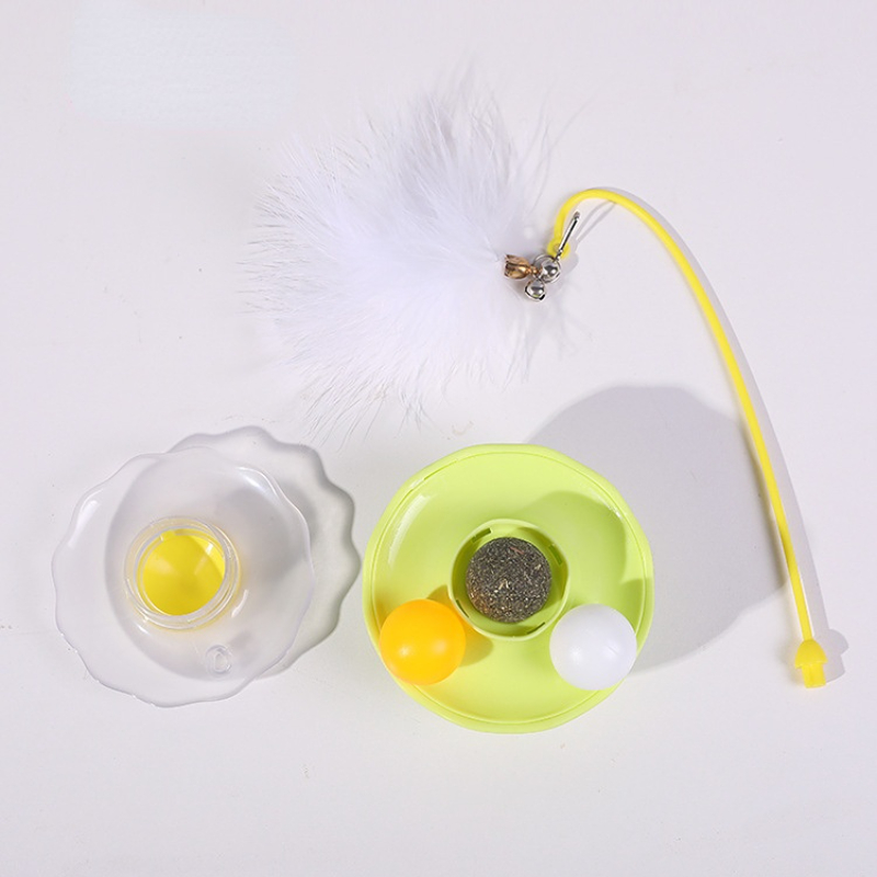 Das Katzen Spielzeug verfügt über einen integrierten Katzen-Turntable, der zusätzliche Spielspaß bietet. Wenn Ihre Katze den Turntable betätigt, werden von verschiedenen Seiten kleine Überraschungen frei, die sie dazu anregen, aktiv zu spielen. Diese Funktion trainiert nicht nur die Motorik Ihrer Katze, sondern bietet auch eine wichtige mentale Stimulation. Darüber hinaus gibt es verschiedene bewegliche Teile, die Ihre Katze animieren, immer wieder zurückzukehren und neue Strategien zur Interaktion zu entwickeln. Die Freude am Spiel wird so ständig neu entfacht.