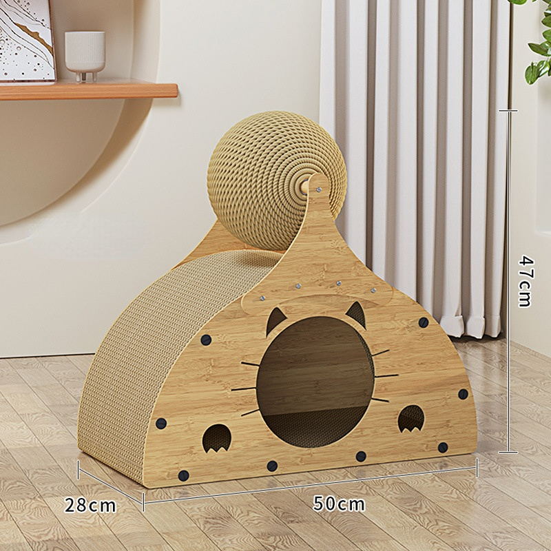 Ein weiteres bemerkenswertes Merkmal dieser Katzenhöhle ist die integrierte Kratzfläche. Diese ist nicht nur funktional, sondern auch besonders für die Krallenpflege Ihrer Katze wichtig. Katzen nutzen ihre Krallen, um ihre Muskulatur zu stärken und ihre Krallen zu schärfen. Durch das Kratzen an der speziell entworfenen Fläche wird das Möbelstück geschont und gleichzeitig die natürliche Neigung Ihrer Katze gefördert, ihre Krallen regelmäßig zu nutzen. Die Kratzfläche ist optimal positioniert, sodass Ihre Katze problemlos darauf zugreifen kann. Die einzigartige Struktur der Kratzfläche sorgt dafür, dass sie gleichzeitig eine bequeme Liegefläche bietet – ein doppelter Vorteil für jedes Katzenheim! Die Katzenhöhle integriert diese Funktion spielerisch in das Design.