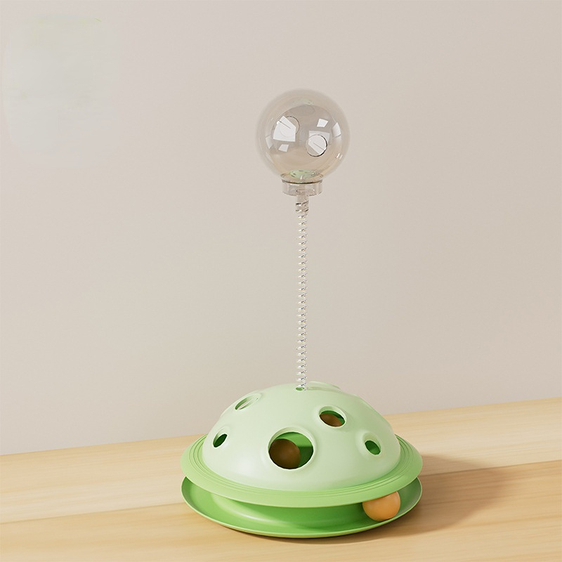 Der Futterball auf der Oberseite verfügt über einen dualen Freigabemechanismus aus Schwerkraft und Rollen: Die direkte Beladung von oben eignet sich für kleine Snacks, und Katzen können vertikal mit dem Ball spielen, um an Futter zu kommen, und so ihre Fähigkeit trainieren, Futter präzise zu greifen. Um den Ball seitwärts rollen zu lassen, müssen Sie ihn anstoßen, sodass er horizontal rollt. Durch die Zentrifugalkraft rutschen größere Leckerlis aus den seitlichen Löchern, sodass Ihre Katze beim Fressen Spaß hat und gleichzeitig die Welt erkundet.