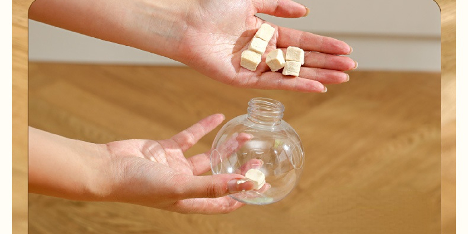 Dieses innovative Spielzeug vereint die Funktionalität einer Katzenangel und eines Futterballs. Die Struktur mit Futterkugel oben und doppelt hängenden Kugeln unten definiert die Unterhaltungsszene für Katzen neu. An der Oberseite und an den Seiten des Balls befinden sich drei Fütterungslöcher, die sich zum Füttern von Snacks wie gefriergetrockneten Pellets und Katzenminze-Keksen eignen. Die Basis verfügt über ein integriertes Doppelkugel-Design, das durch „Oben fressen und unten bewegen“ eine doppelte Stimulation erzeugt, wodurch nicht nur der natürliche „Jagd-Fress“-Zyklus der Katze befriedigt wird, sondern auch durch dynamische Geräusche kontinuierlich die Aufmerksamkeit der Katze erregt werden kann. Die gesamte Einheit besteht aus lebensmittelechtem PP-Material und alle Kanten und Ecken sind fein poliert, sodass Sie sich beim Kauen keine Sorgen machen müssen.