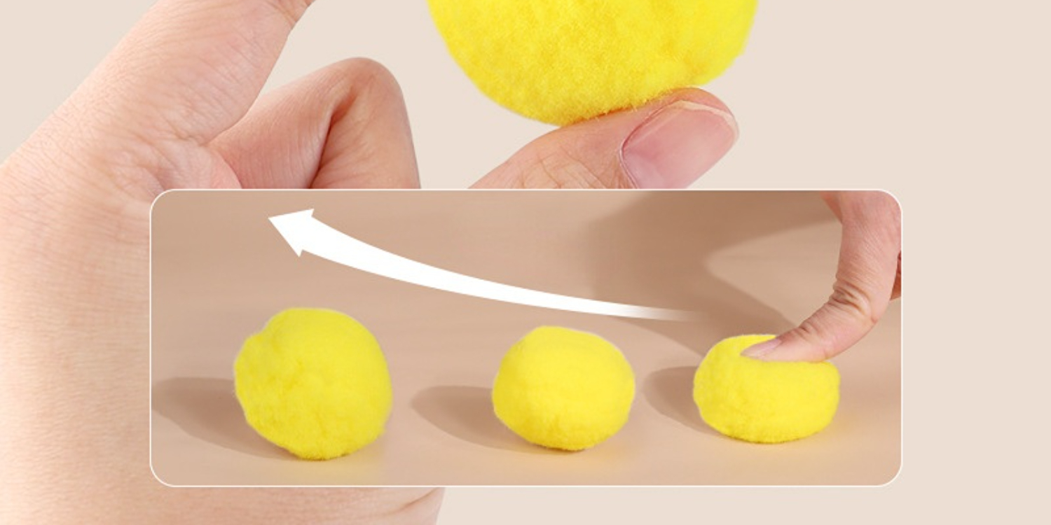 Plüschball: Die Außenschicht ist kurz und weich und erzeugt bei Bodenberührung ein leises Geräusch, ähnlich der Bewegung einer Beute, was die Erkundungslust der Katze weckt.