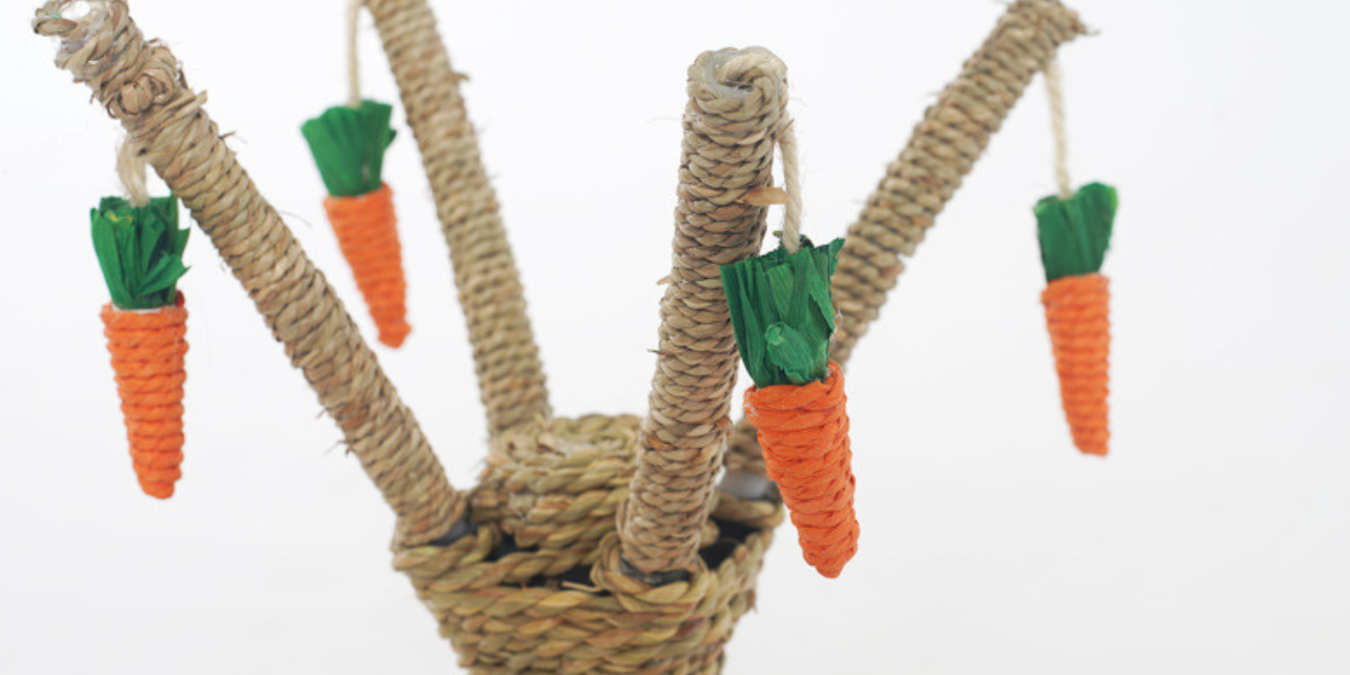 Der kleine Kratzbaum überzeugt durch sein originelles Design, das an natürliche Baumäste erinnert und besonders ansprechend wirkt. An den Ästen hängen niedliche Karotten-Anhänger, die nicht nur dekorativ sind, sondern auch die Aufmerksamkeit Ihrer Katze auf sich ziehen und ihren Spieltrieb fördern. Dieser Kratzbaum stillt nicht nur den natürlichen Kratzinstinkt Ihrer Katze, sondern wird auch zu einem hübschen Blickfang in Ihrem Zuhause.