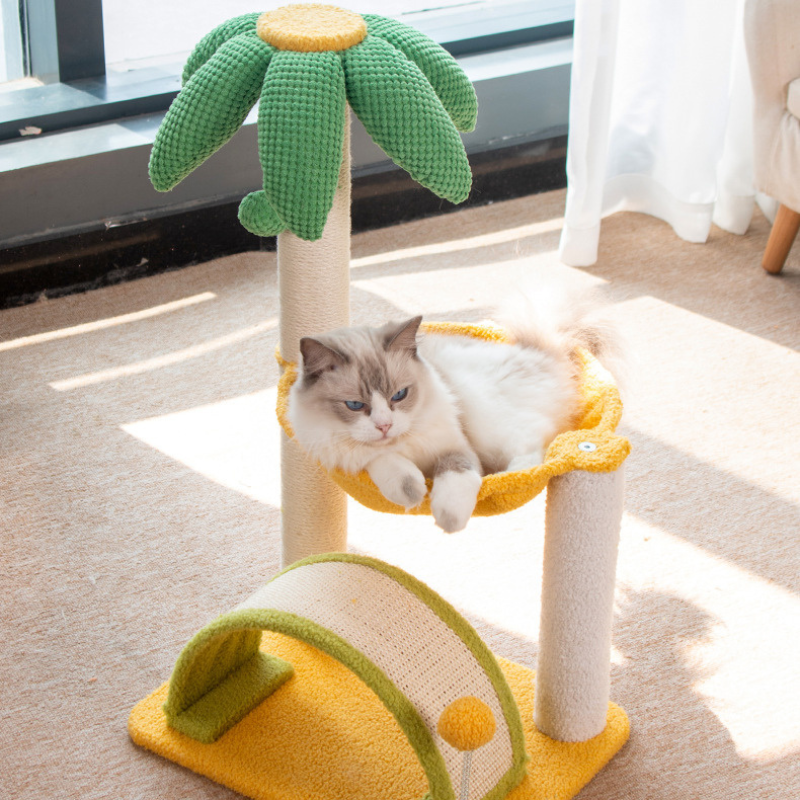 Bringen Sie den Sommer ins Haus und schaffen Sie für Ihre Katze einen echten Urlaubsplatz! Die Kombination aus der stilvollen Palmenform und einem gemütlichen Hängemattenbereich sorgt für ein einzigartiges, tropisches Ambiente.