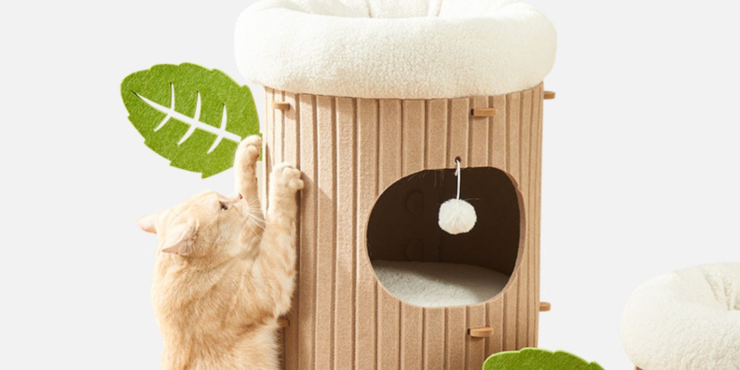 Das cartoonartige Baumstamm-Design zieht die Aufmerksamkeit Ihrer Katze sofort an. Es fügt sich nicht nur harmonisch in Ihre Wohnräume ein, sondern bietet auch zahlreiche Unterhaltungsmöglichkeiten. Ihrer Katze wird es gefallen, sich über die verschiedenen Etagen zu bewegen oder im gemütlichen Häuschen Platz zu nehmen.