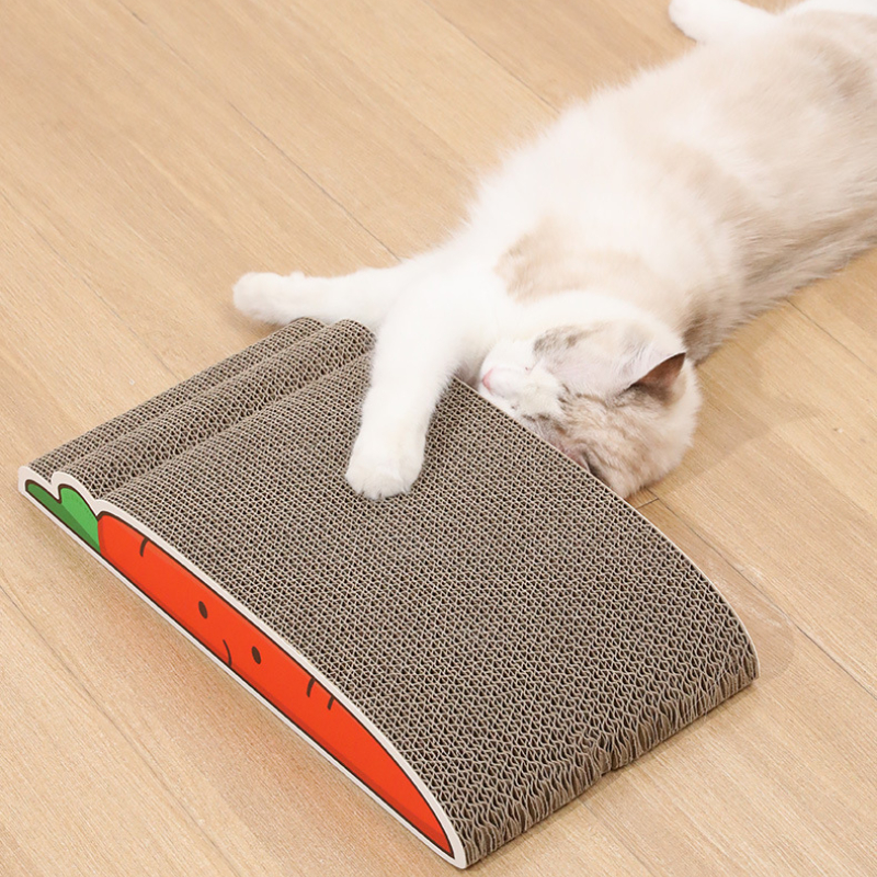 Unser kratzbrett katze kommt in mehreren kreativen Designs, darunter große Scans von frischen Gemüse wie Blaulauch, Banane und Karotte. Diese süßen und bunten Cartoon-Formen fügen nicht nur einen Hauch von Spaß in den Raum hinzu, sondern fördern auch das Interesse und die Neugier Ihrer Katze. Katzen sind von Natur aus verspielt und lieben es, zu kratzen und zu spielen. Durch die ansprechende Gestaltung wird Ihre Katze angeregt, das Kratzbrett zu benutzen, anstatt Ihre Möbel oder Teppiche in Beschlag zu nehmen. Das fröhliche Design sorgt dafür, dass das Kratzbrett nicht nur funktional, sondern auch dekorativ in Ihrem Zuhause wirkt.