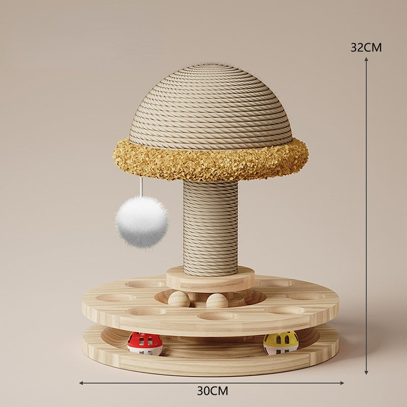 Kratzbaum Holz, Pilzform Katzenkratzbaum aus Massivholz mit Drehplattform & interaktivem Ball für zufriedene Katzen