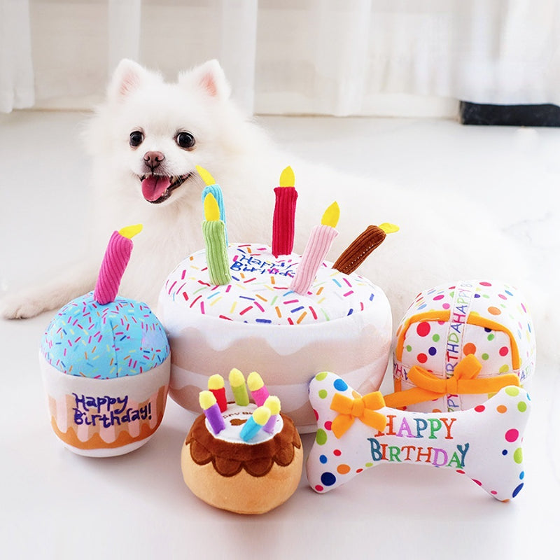 Kuscheltier für den Hund, niedliches Geburtstagskuchen, Welpenspielzeug, Perfekte Kauspielzeug für alle Hunde (1 Stück)