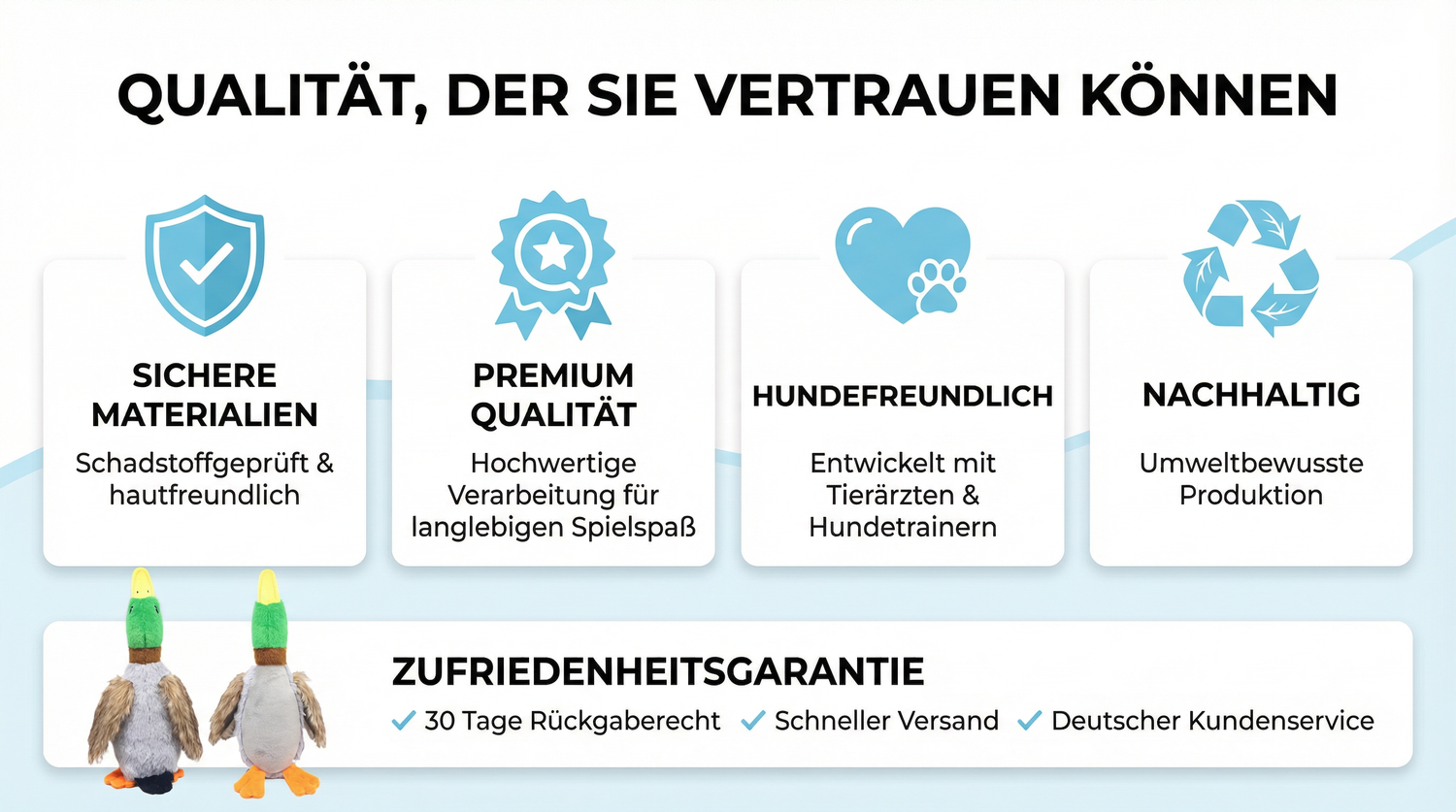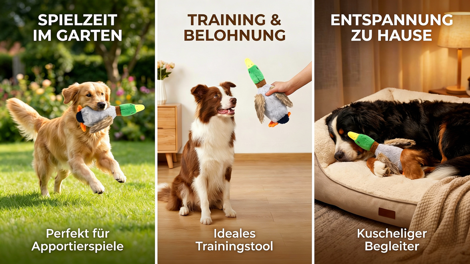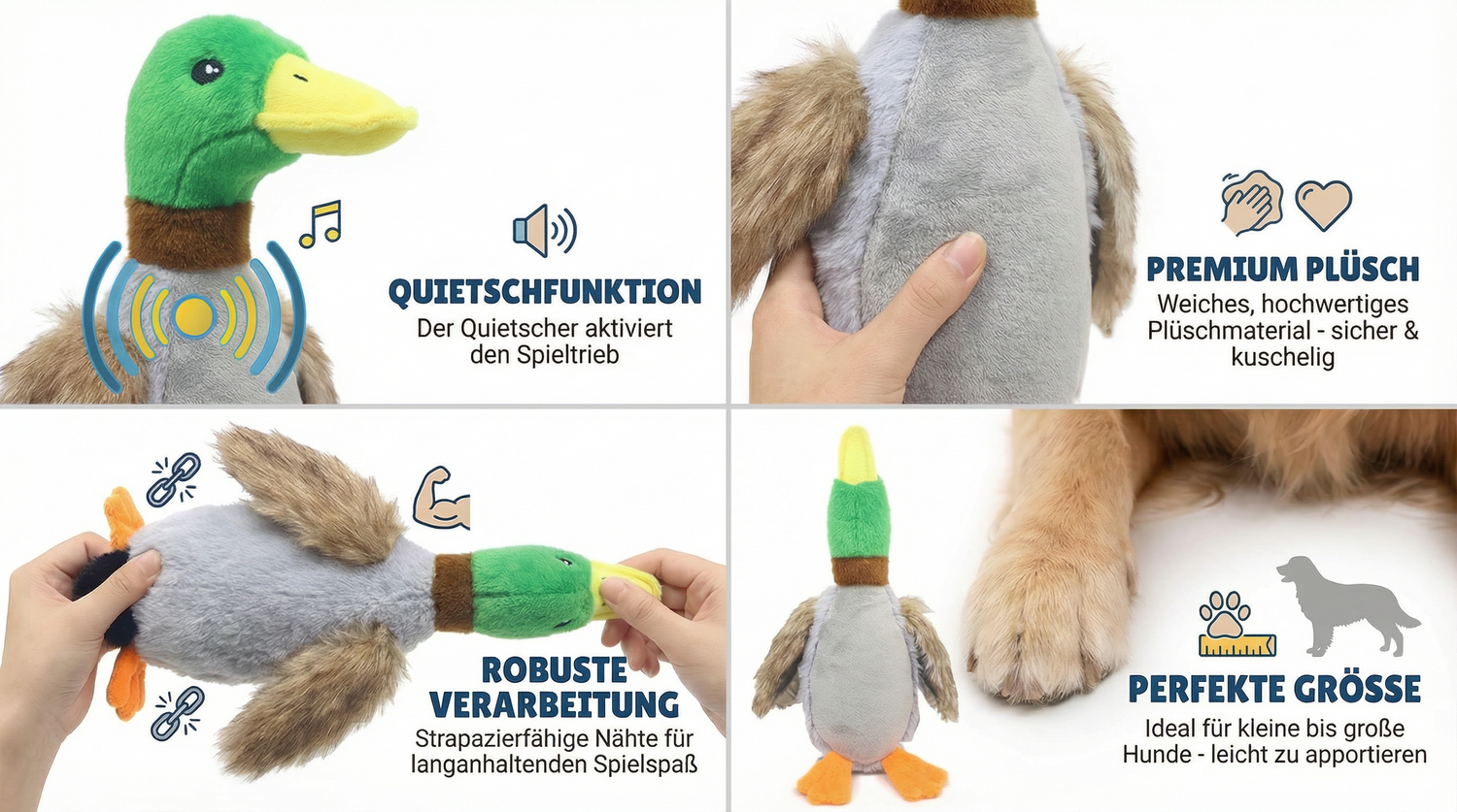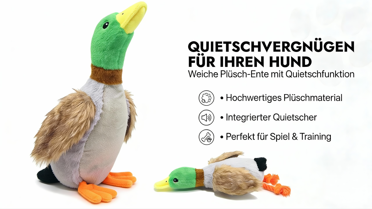 Ein Kuscheltier für den Hund ist mehr als nur ein Spielzeug – es ist ein treuer Begleiter, der deinem Hund stundenlangen Spaß und Geborgenheit bieten kann. Besonders Hunde, die gerne mit weichen, knuddeligen Spielzeugen schmusen oder spielen, werden dieses Plüschspielzeug in der Form einer Ente lieben.
