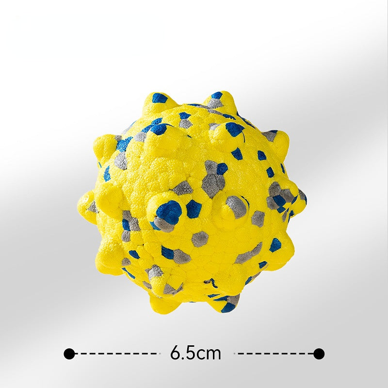 Zwei Varianten – Wählen Sie zwischen einem runden Ball und einem stacheligen Ball, beide in leuchtendem Gelb und Weiß, um die Neugier Ihres Hundes zu wecken.