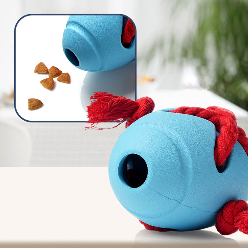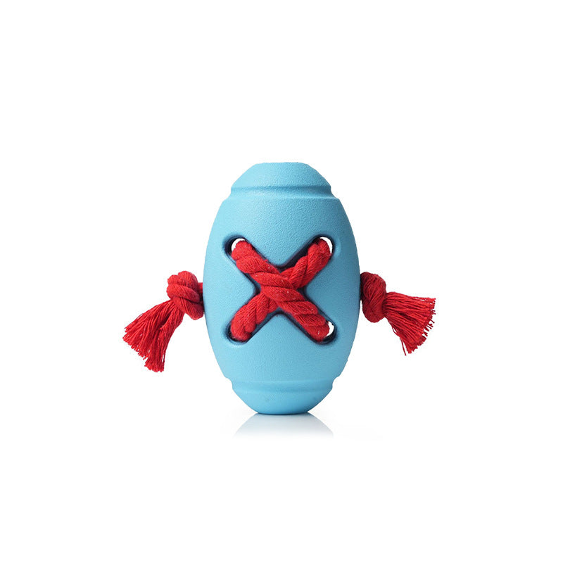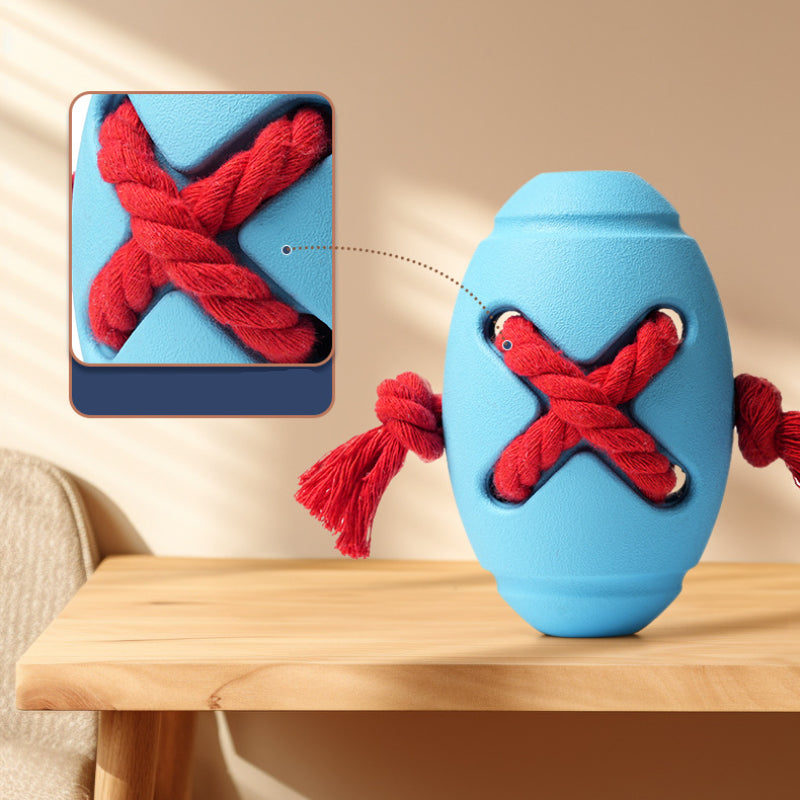 Spielzeug für den Hund, Interaktives Rugbyball aus Gummi, Hund Futterball mit Beißseil für Langsame Fütterung, Zwei Farben