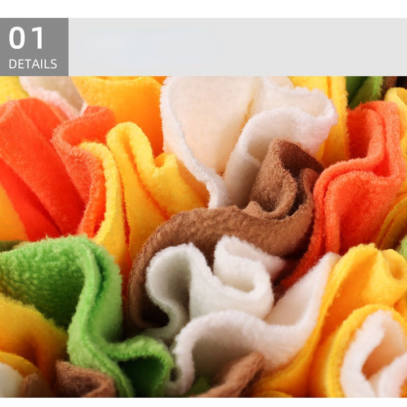 Die Schnüffeldecke wurde speziell entwickelt, um die natürlichen Fähigkeiten Ihres Hundes zu stimulieren. Sie enthält zahlreiche Versteckmöglichkeiten und Tunnels, in denen Sie Leckerlis verstecken können. Dies fordert nicht nur den Geruchssinn Ihres Hundes heraus, sondern auch seine Problemlösungsfähigkeiten.