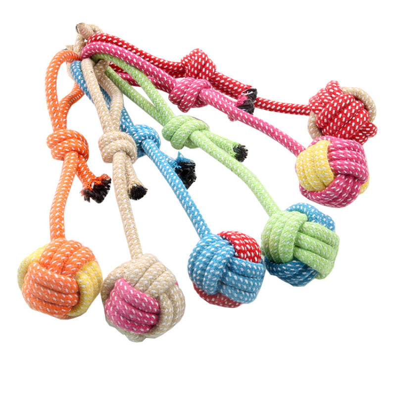 Hunde Ball Spielzeug mit Seil, Buntes und handliches Hundespielzeug für draußen zum Trainieren und Spielen (1 Stück)