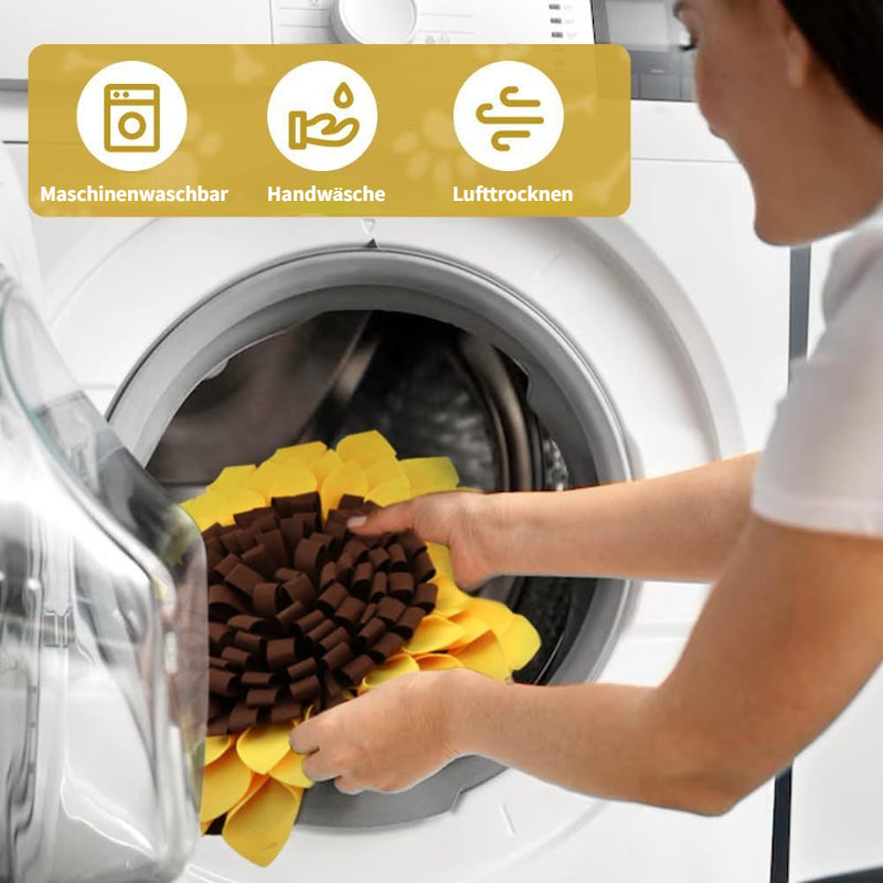 Spielerisches Futterversteck – Mit ihrem einzigartigen Sonnenblumen-Design ermöglicht diese Schnüffelmatte das Verstecken von Leckerlis, wodurch Ihr Hund auf kreative Weise gefordert wird.