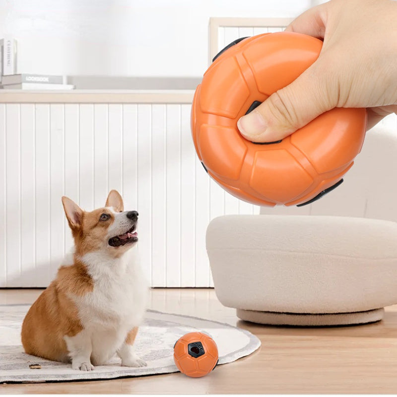 Vielseitige Auswahl – Es stehen drei verschiedene Arten von Hundebällen zur Auswahl: orangefarbener Leckerli-Fußball, weißer Leckerli-Fußball mit Kaustab und orangefarbener Leckerli-Fußball mit Kaustab.